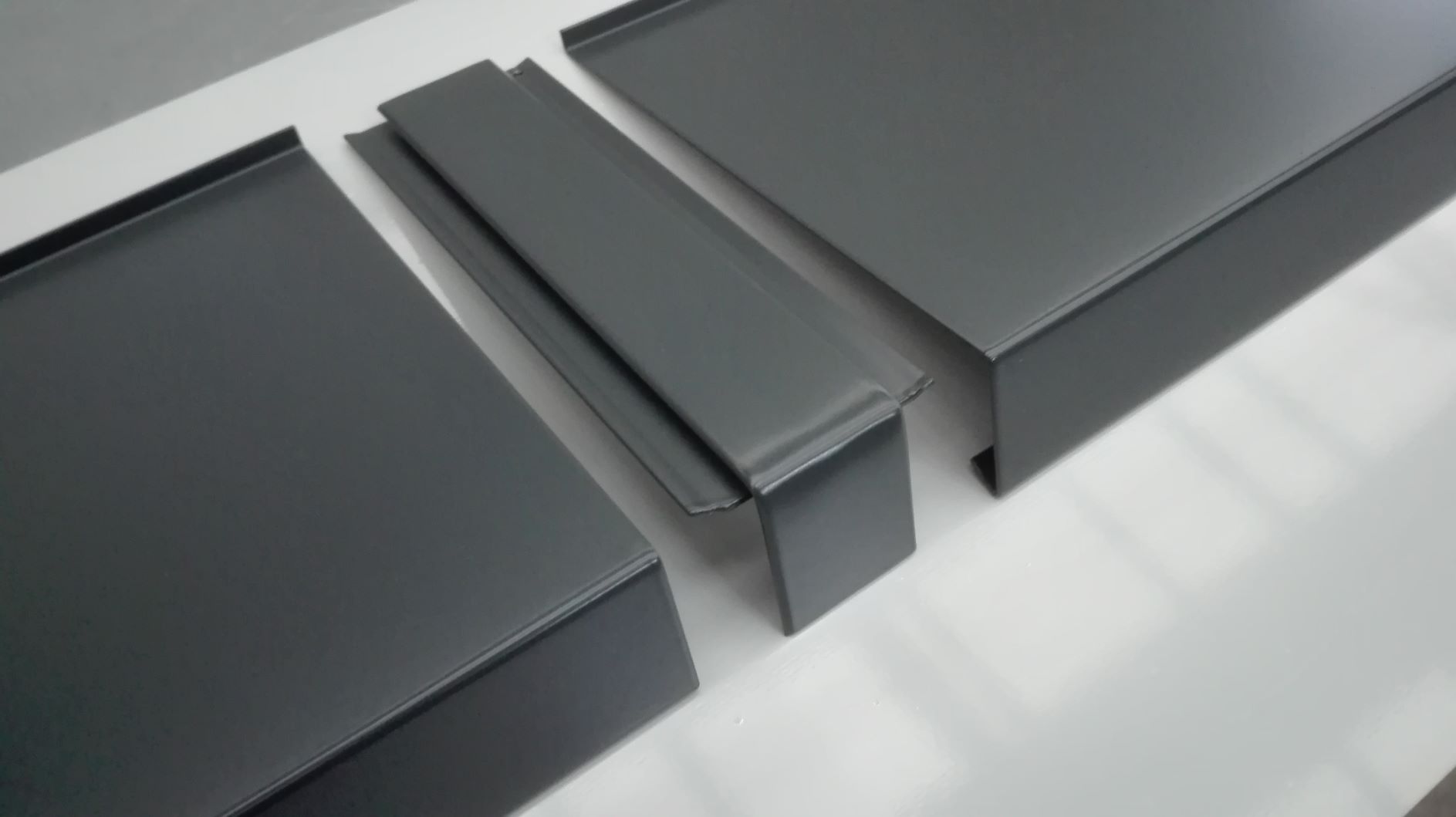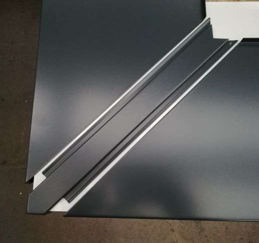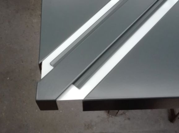 Łączniki kątowe pozwalają uzyskać połączenia kątowe parapetów, obróbek lub kształtek. Wykonane są z odpowiednio ukształtowanego profilu aluminiowego, a następnie w wyniku operacji spawania powstaje czoło profilu dopasowane do obróbki, maskujące połączenie obróbek pod dowolnym kątem.